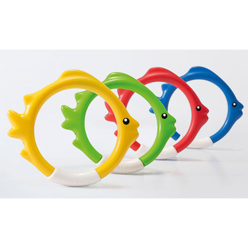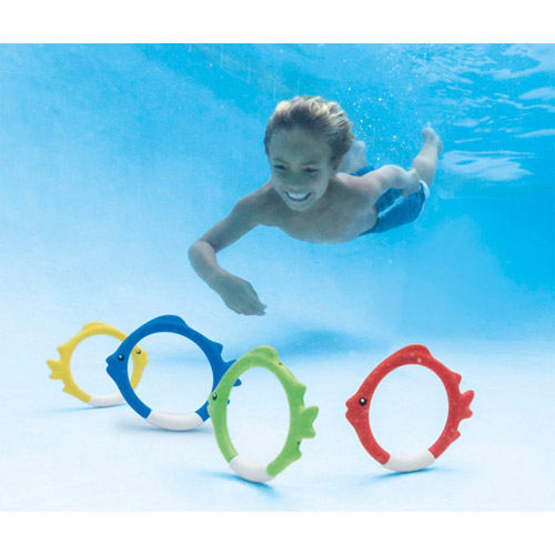 Ringen staan rechtop op de bodem van het zwembad door het ingebouwde klein gewichtje.