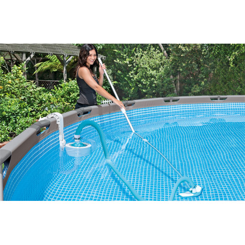 Deze flexibele buis is aansluitbaar op de vijfhoekige Intex borstel uit de Deluxe onderhoudskit van Intex.