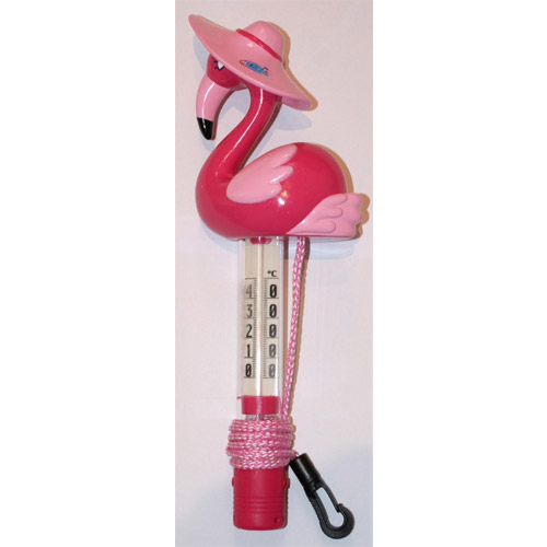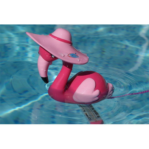 Handig om te weten is hoe warm uw zwembad water heeft, dit kan perfect met deze thermometer van Kerlis in de vorm van een flamingo.
