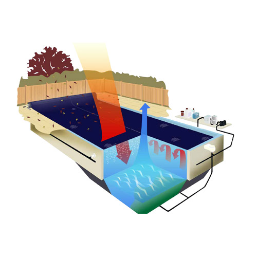- is zodanig ontworpen dat de afdekking altijd pat op het wateroppervlak ligt zodat er vrijwel geen plooien ontstaan.